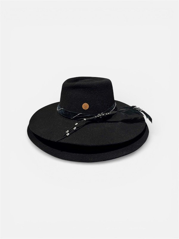 Sombrero de fieltro de lana, moldeado en horma de madera, trabajo 100 % artesanal.